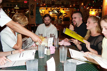 after an unproductive shopping trip we came home for a hour and i slept off a headache. i was still super achy when dan woke me up though. we went to a mexican restaurant in arlington for dinner with everyone that worked at the festival. it turned out that they put meat stock in practically everything there, so dan and i just had some guacamole and sopapillas.